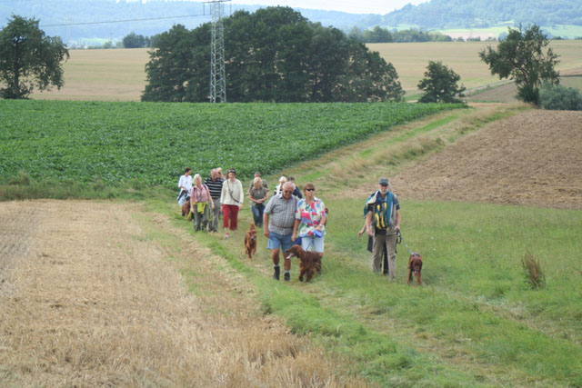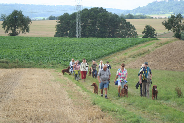 Heute war es mal wieder so weit. Die Settergirls hatten eingeladen. Dem Aufruf folgten 20 Hunde und die dazugehörigen Zweibeiner. Petrus meinte es auch noch gut mit uns so blieben wir auf unserer 2-stündigen Tour fast trocken, das bisschen Regen am Ende der Runde lassen wir da außen vor.